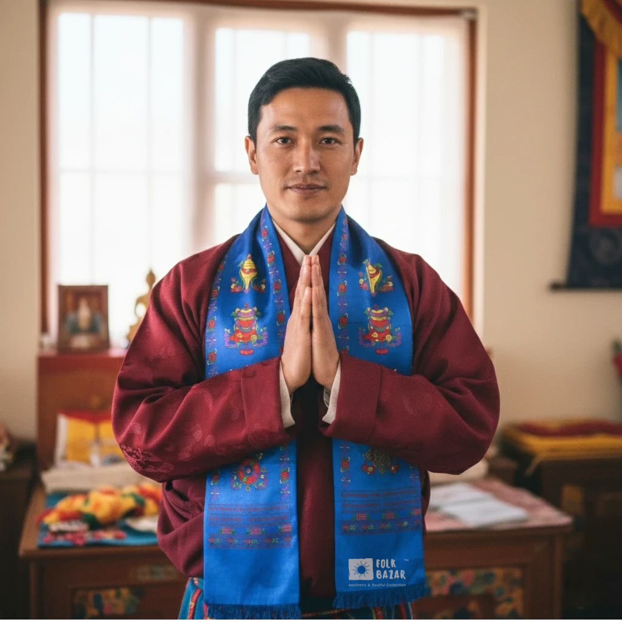 Brighten up your spiritual journey with our eye-catching Khadag scarf set! Featuring the 8 Lucky Signs printed in dazzling colors on bold blue, green, yellow, white, and red satin fabric, these scarves add a splash of tradition and style. Perfect for rituals, gifting, or even as striking decor, they symbolize purity, compassion, and harmony. Grab this must-have set – one bapcha includes 4 vibrant pieces, each bursting with cultural significance!