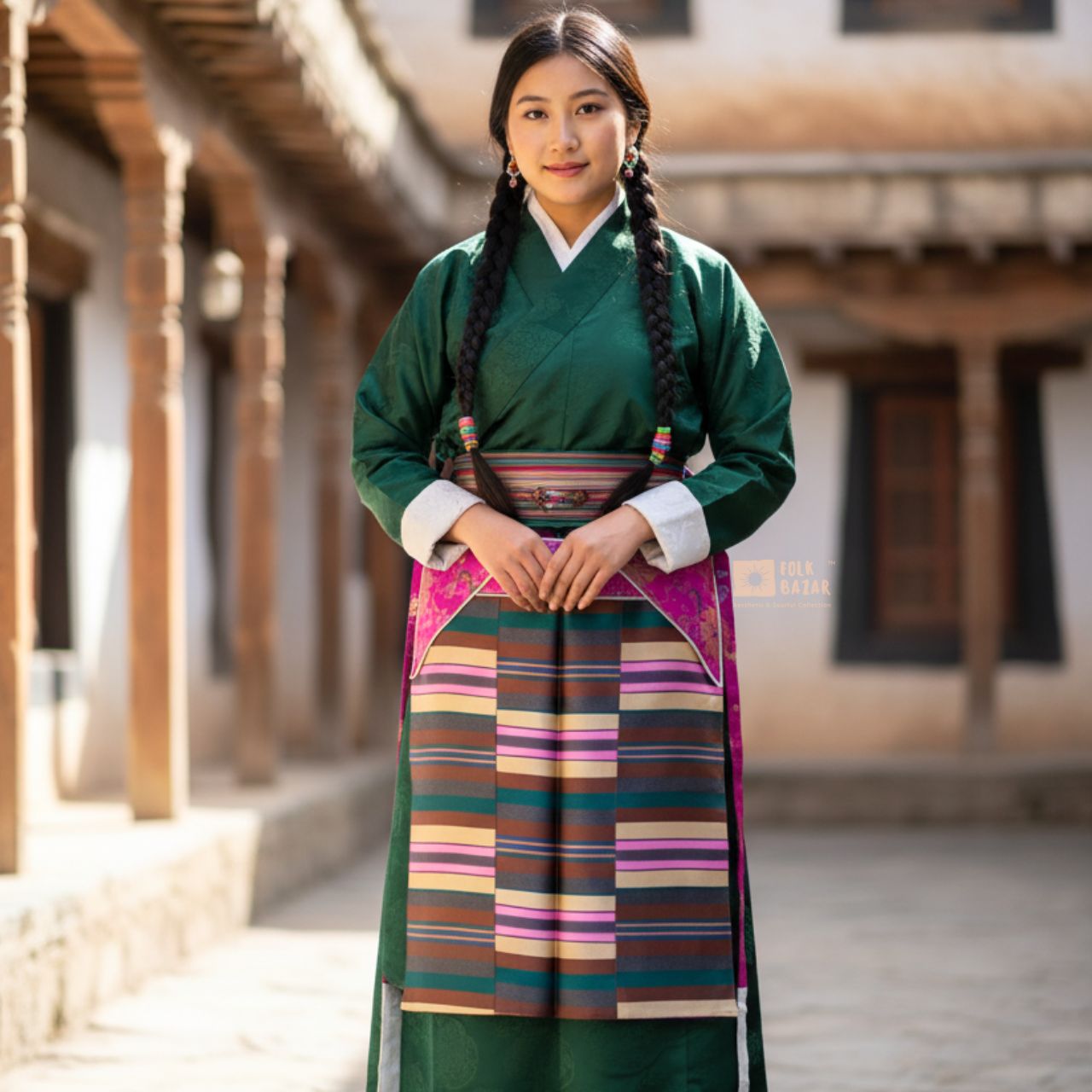 The “pangden” is the apron worn by Tibetans and Himalayan women in front of their Chubas - dress. The pangden represents marriage - that the woman wearing it is married in most Himalayan cultures.