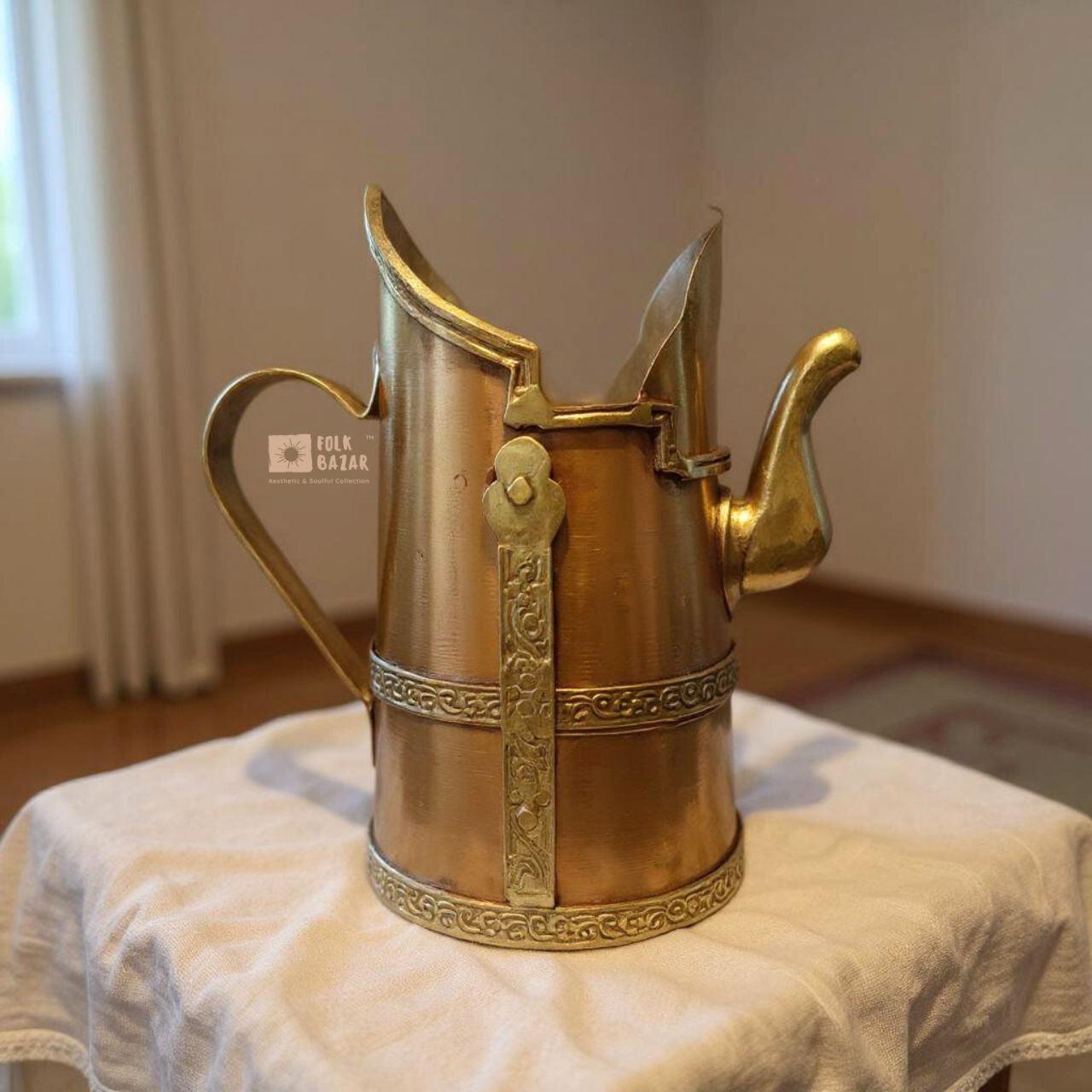 Due to its advantages for both the environment and human health, copper Chomey jugs are known to as "friendly superheroes". We present to you 6.8 inches in length and 4 inches in breadth Copper Chomey Jugs of the highest quality.