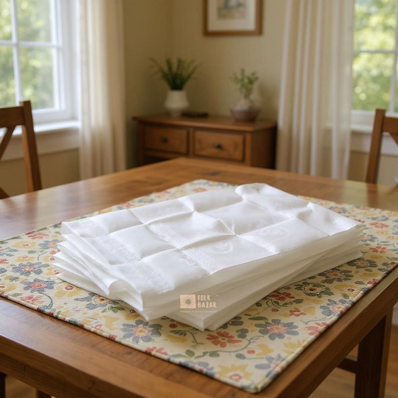 White Eight Lucky Signs Printed Khadag (1 Bapcha - 4 pcs)