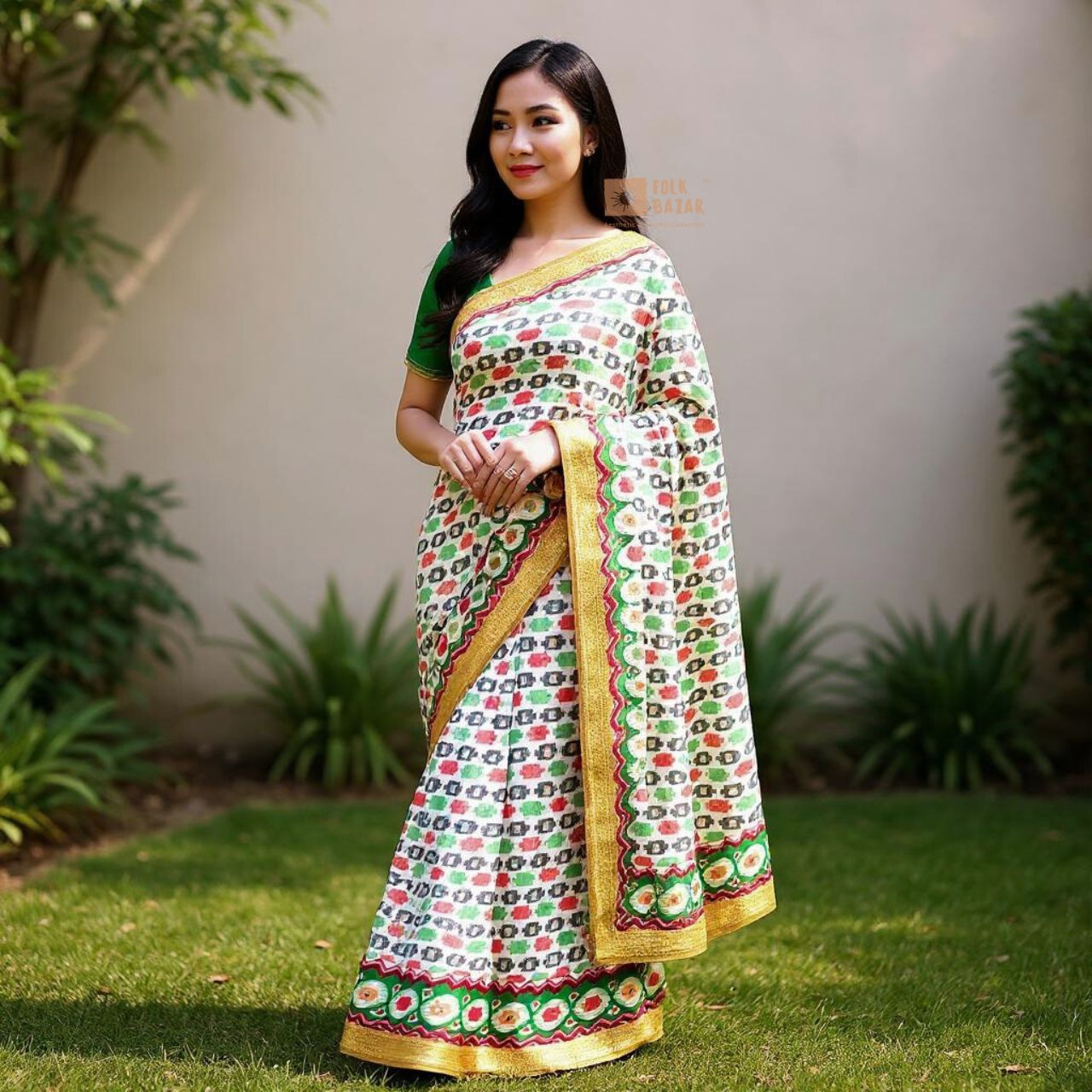 Introducing the Dhaka Saree: Where Tradition Meets Elegance! Handcrafted by skilled artisans with premium cotton threads, it's a masterpiece of beauty and uniqueness.