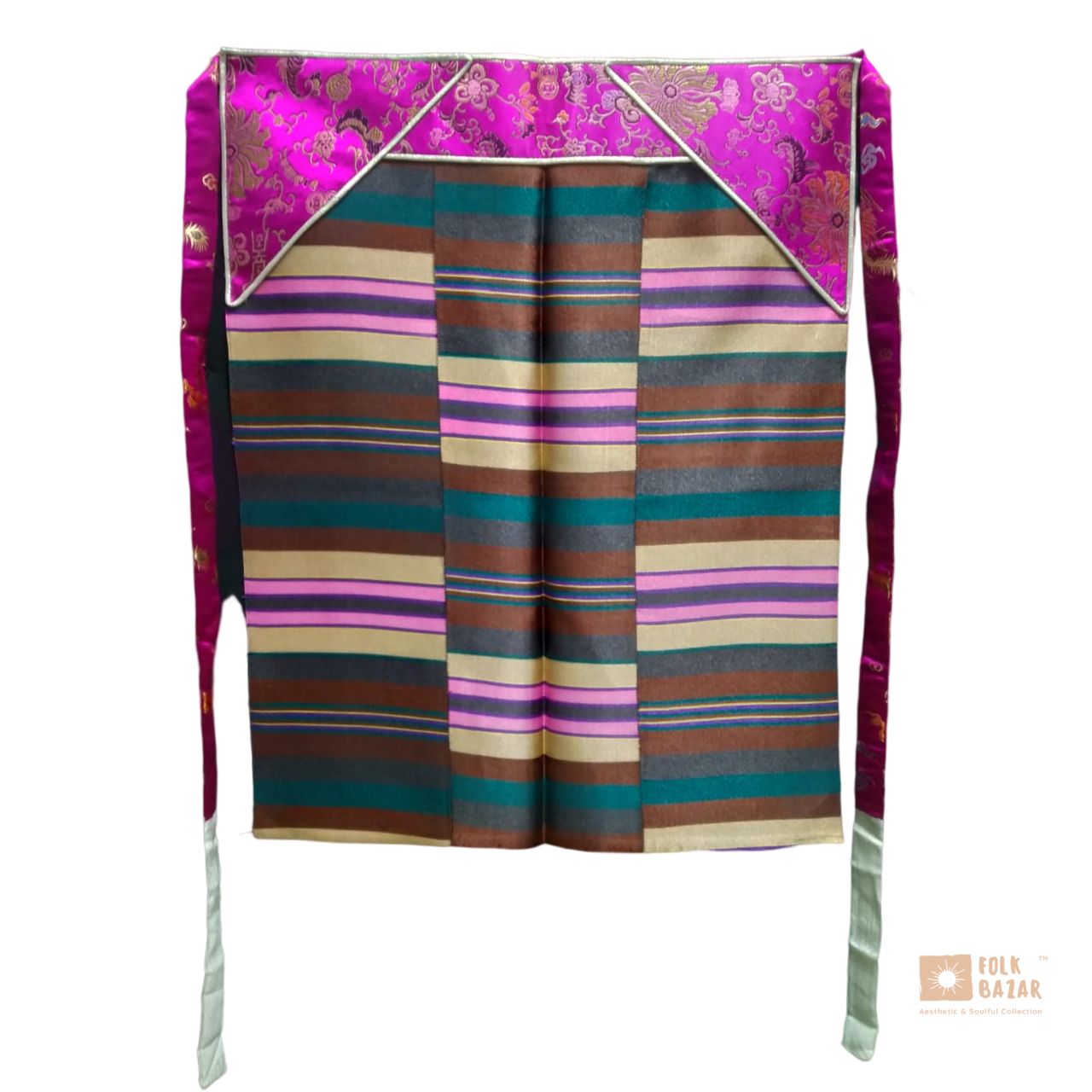 The “pangden” is the apron worn by Tibetans and Himalayan women in front of their Chubas - dress. The pangden represents marriage - that the woman wearing it is married in most Himalayan cultures.