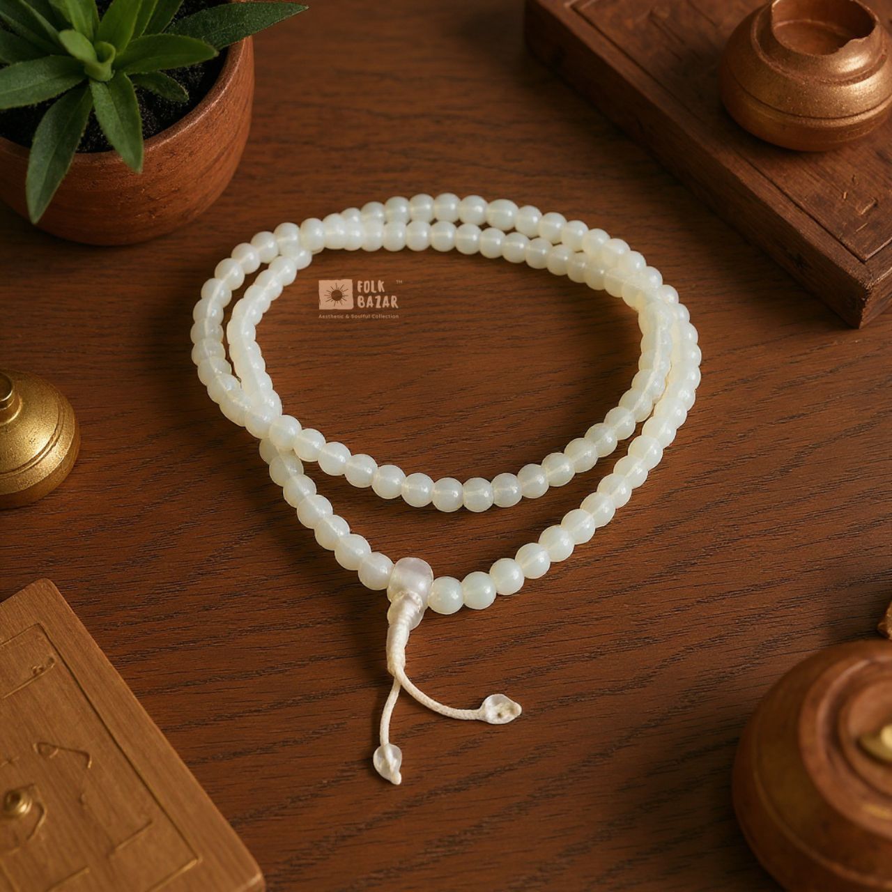 Simplify your practice with our Glass Japa Maala. Made with smooth, clear glass beads, this mala is ideal for mantra repetition, offering a sleek and understated addition to your meditation routine.