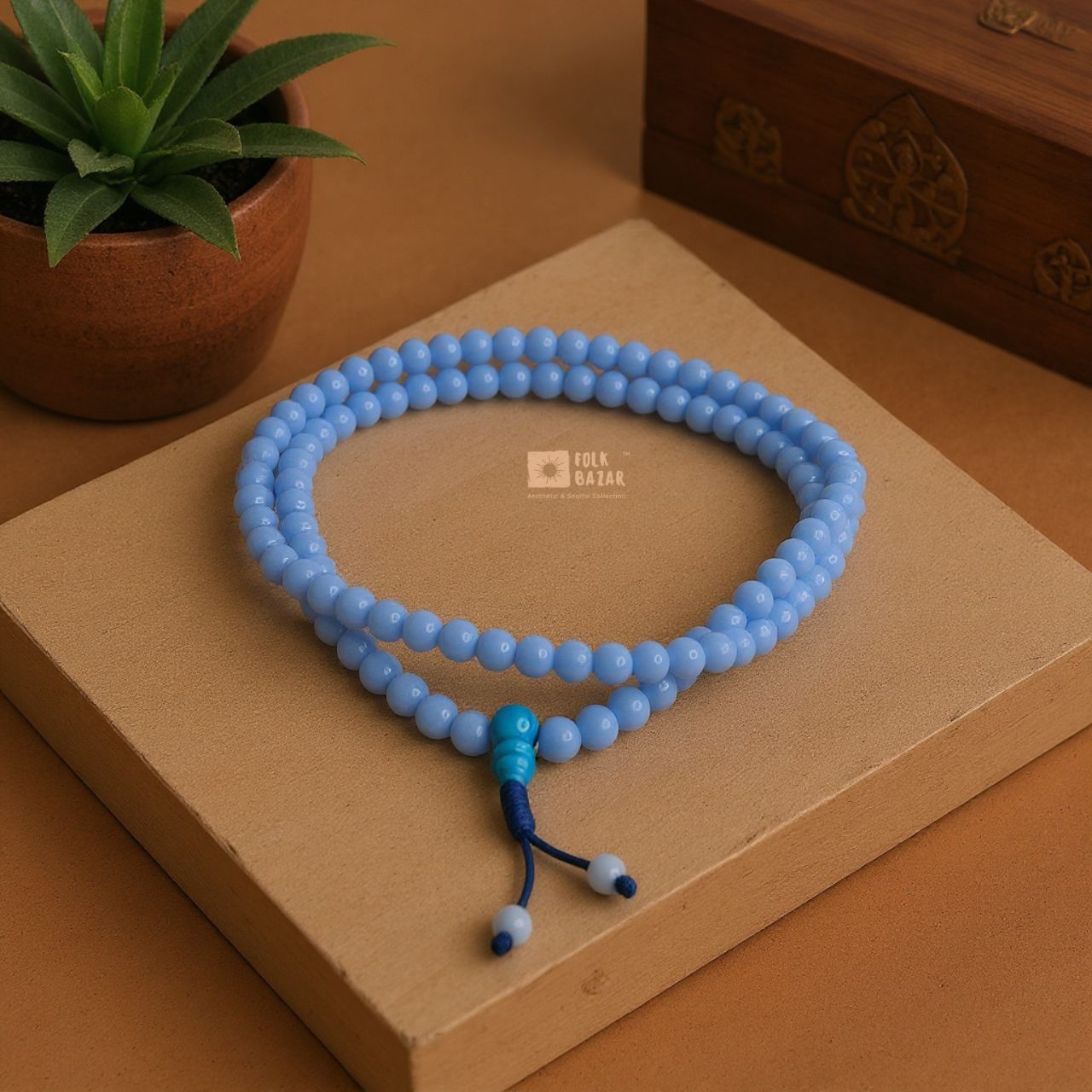 Simplify your practice with our Glass Japa Maala. Made with smooth, clear glass beads, this mala is ideal for mantra repetition, offering a sleek and understated addition to your meditation routine.