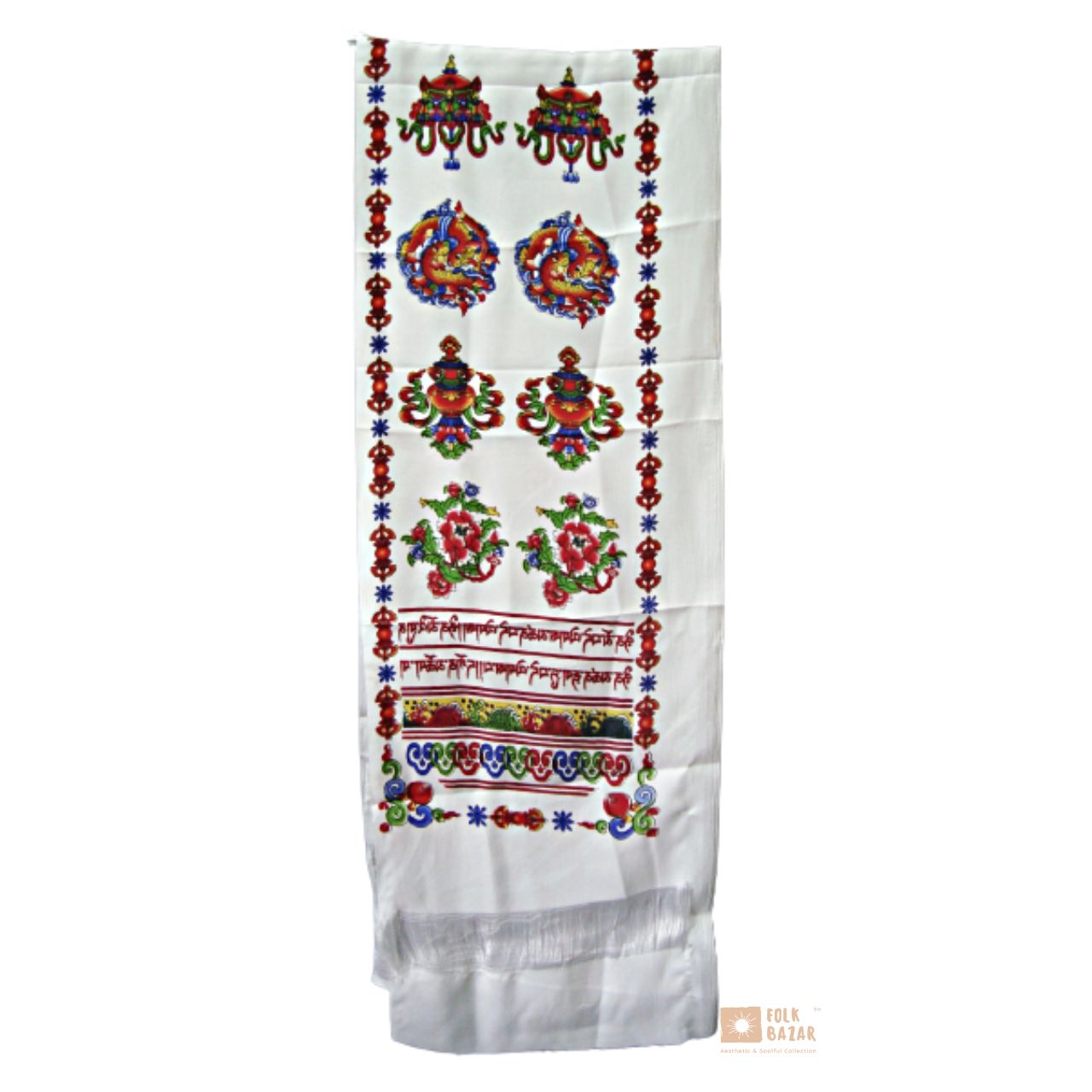 White Eight Lucky Signs Printed Khadag (1 Bapcha - 4 pcs)
