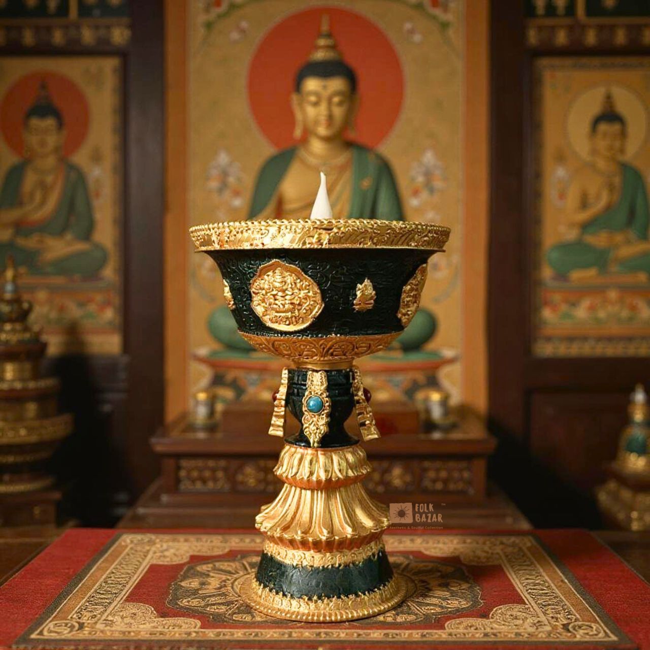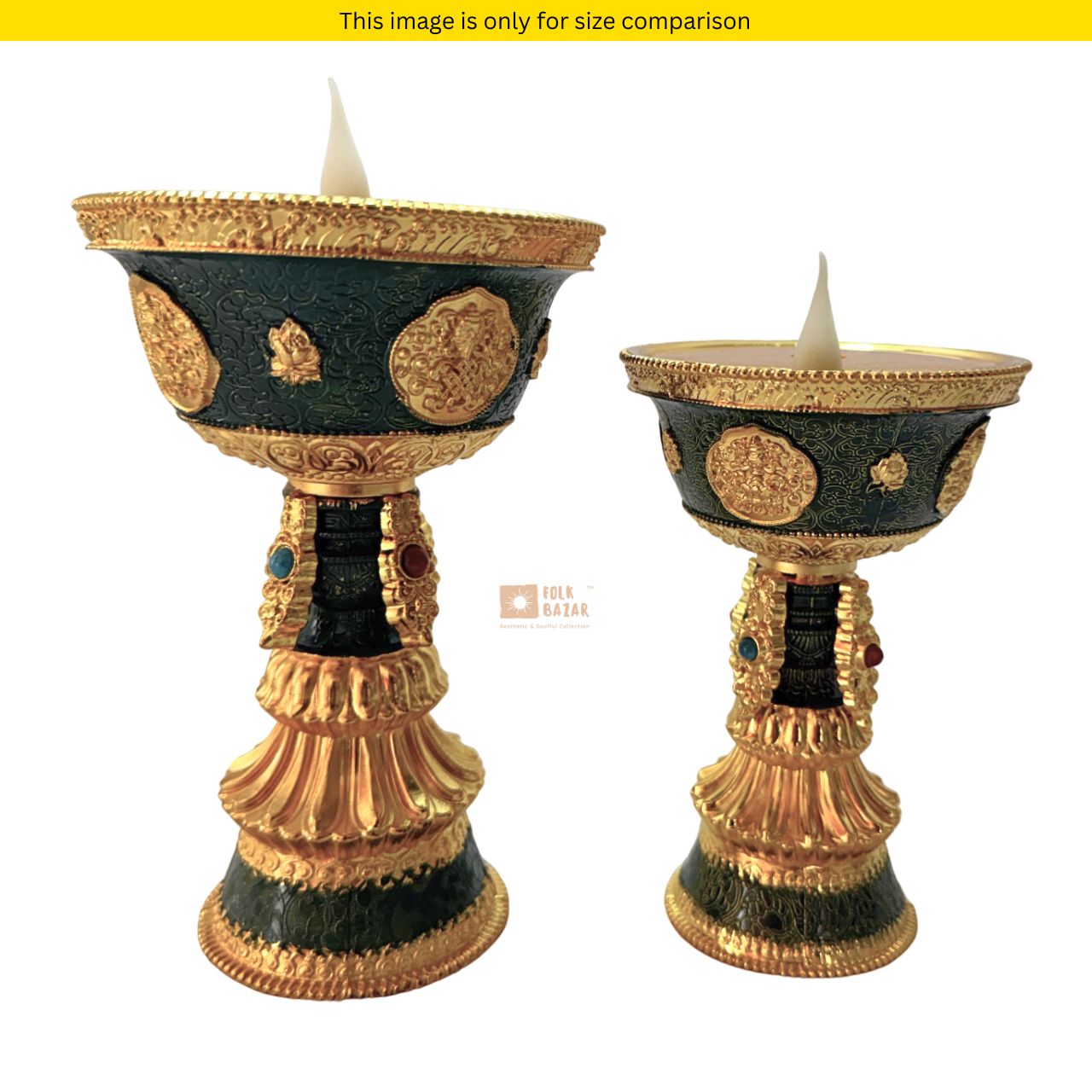 An electric butter lamp offers a modern alternative to traditional butter lamps while maintaining the spiritual essence of the practice. Designed with care, it emits a steady, warm glow to symbolize wisdom and enlightenment, just like a traditional flame.