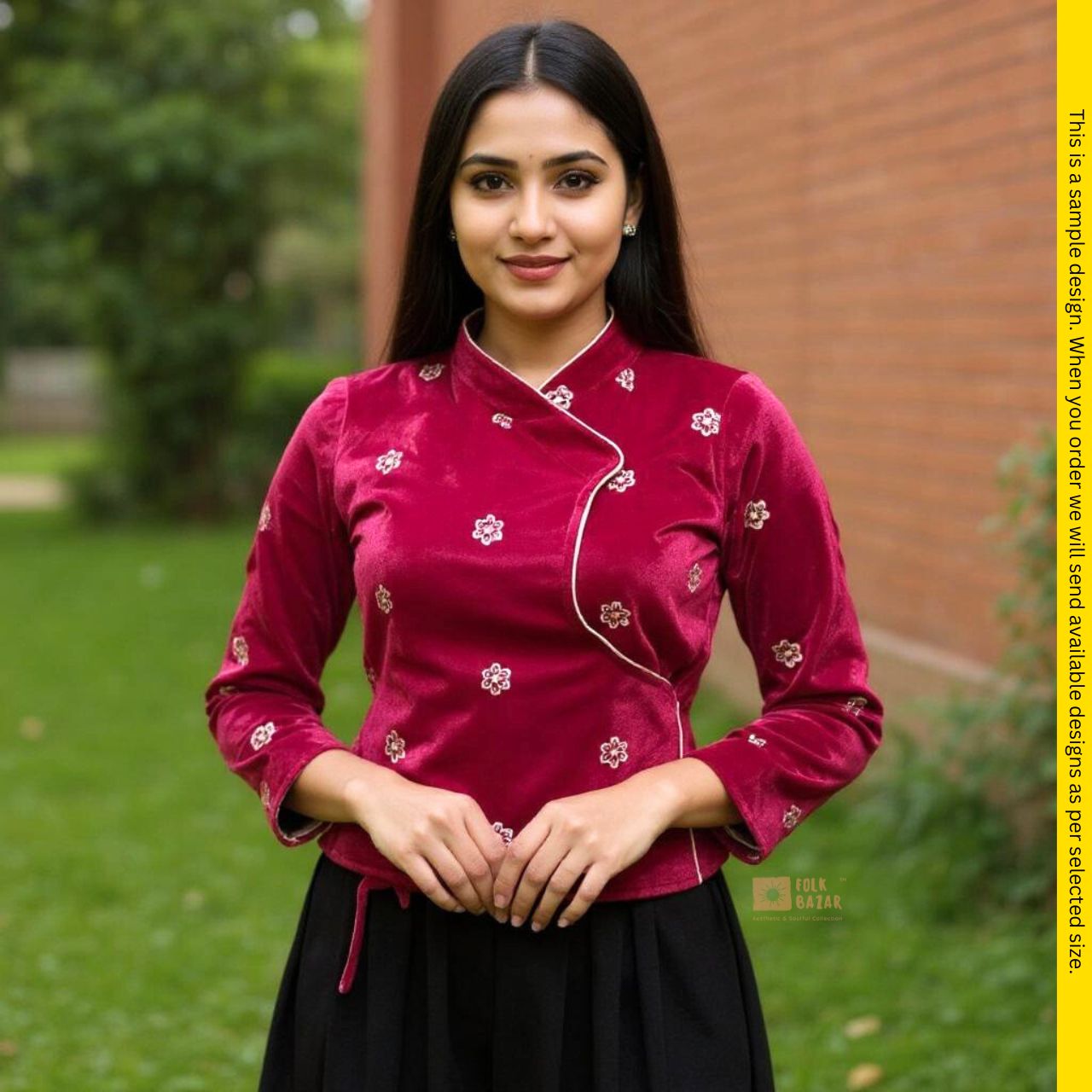 The Chaubandi Cholo is a staple for any Nepali wardrobe. Made from soft, durable cotton, its fitted design and vibrant floral patterns make it a versatile piece for everyday wear or festive occasions. Pair it with a matching saree or skirt, and add bangles or earrings for a complete look that’s equal parts comfortable and stylish.