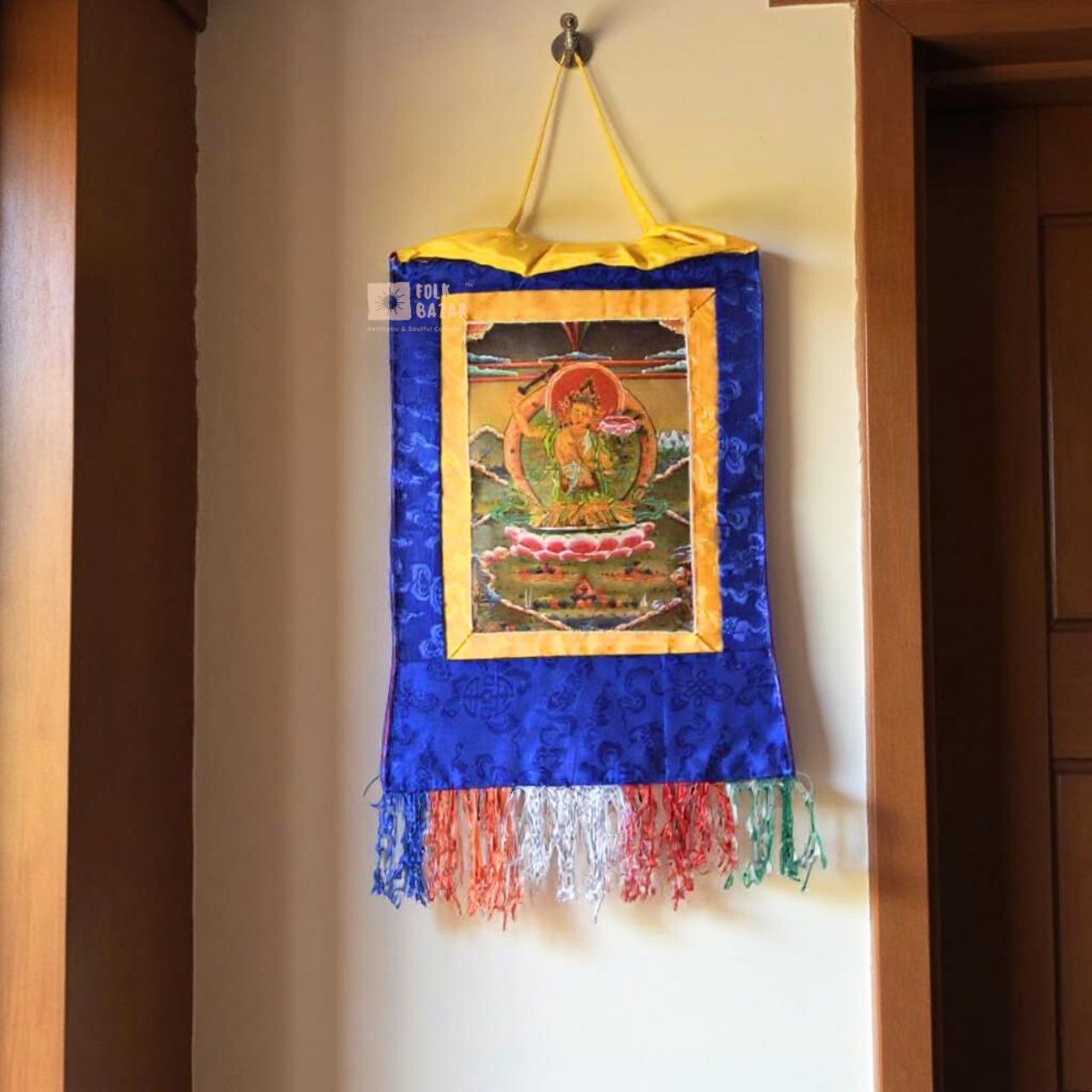 Discover the Thangka, beautifully printed with an image of Jambayang, a revered deity symbolizing wisdom and knowledge. This high-quality artwork features intricate details and vibrant colors,...